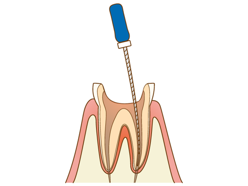 根管内は肉眼で見ることが難しい複雑な構造をしています。その根管内の細菌を完全に除去するためには、洗浄に十分な時間をかけることが必要です。時間に制限を設けず、丁寧に隅々まで細菌を除去します。